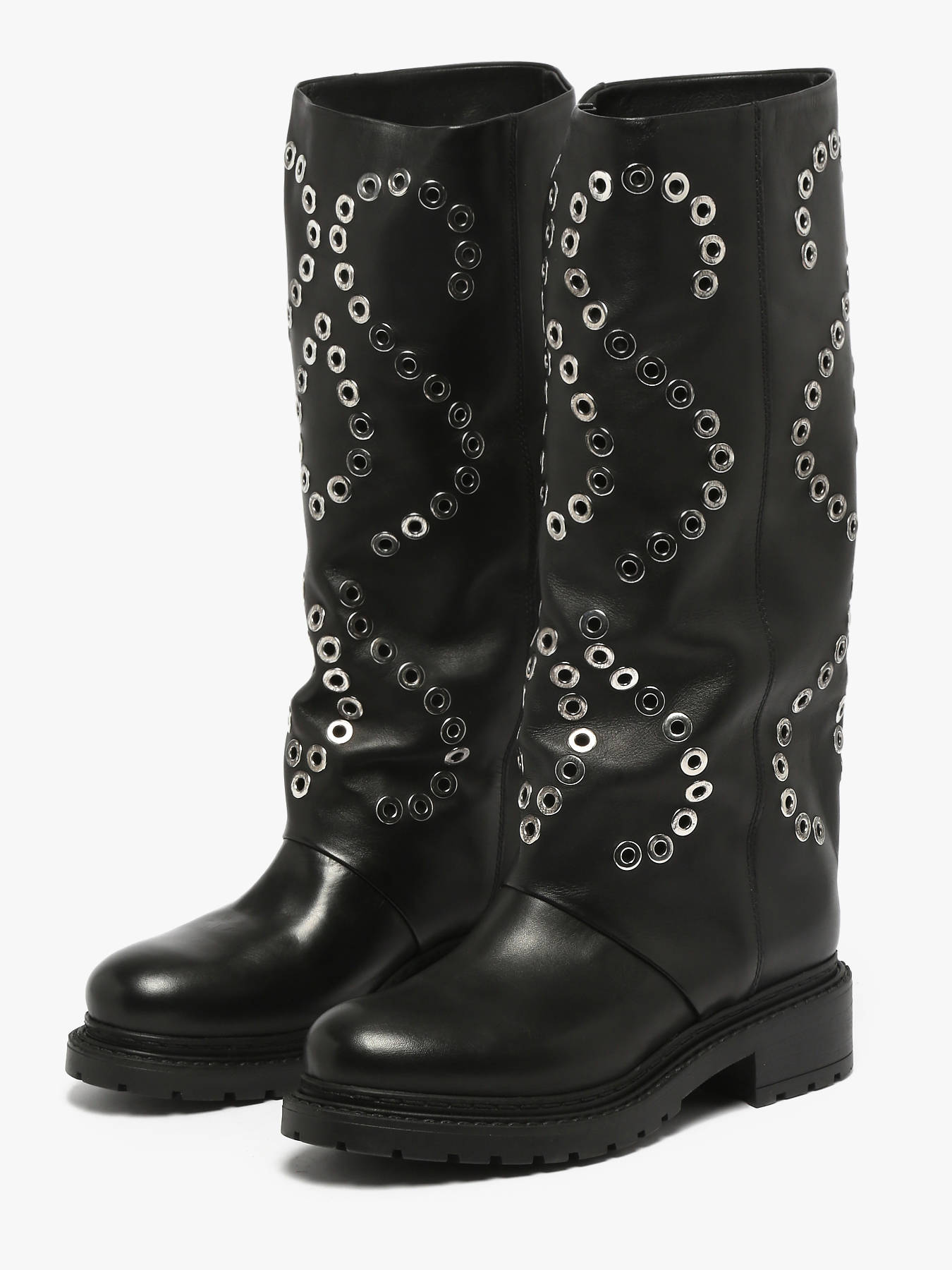 Découvrez les bottes motardes Metisse, un modèle noir ultra tendance rehaussé d’œillets argentés qui apportent une touche rock et moderne. Conçues entièrement en cuir de haute qualité, elles offrent un confort optimal grâce à leur doublure et semelle intérieure en cuir. La tige large assure un maintien parfait tout en facilitant l’enfilage, et chaque détail reflète un savoir-faire italien irréprochable. Les finitions soignées soulignent l’élégance et la durabilité de ces bottes, idéales pour compléter un look audacieux et raffiné. Made in Italy, elles incarnent l’alliance parfaite entre style, confort et qualité. Un incontournable pour celles qui recherchent des bottes robustes et élégantes au quotidien.