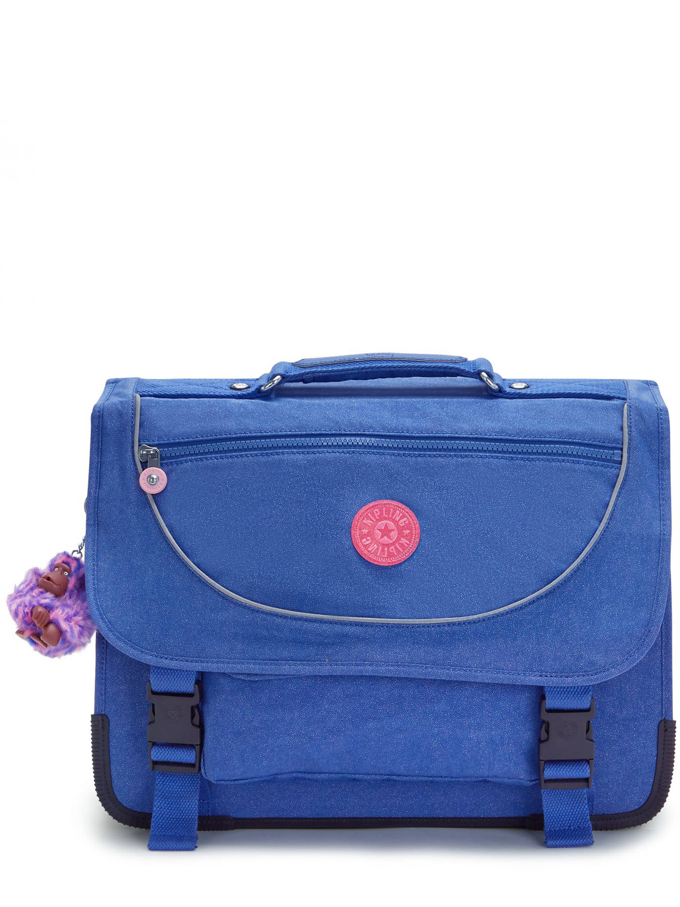 41 cm - 21 litres - 1.16 kg ~ Cartable 2 compartiments de la ligne Back to school signé Kipling. Idéal pour le CM1 et CM2. Grâce à sa belle capacité et ses nombreuses poches simples ou zippées, ce cartable sera parfait pour ranger toutes les affaires scolaires. Il peut contenir du format A4. Pour assurer confort et maintient, le dos et les bretelles sont rembourrés, les angles et fond sont renforcés. Niveau sécurité, des bandes réfléchissantes sont disposées autour du cartable. Petit plus, un protège sac réfléchissant se trouve dans le sac. On craque sur le porte clé assorti au sac !