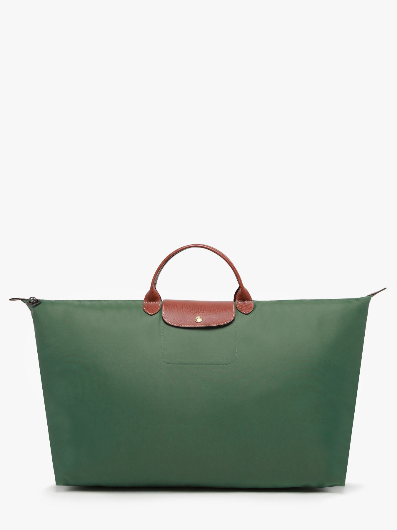 Fermez ce sac de voyage Le Pliage Longchamp à l'aide d'un zip ainsi que d'un rabat à pression et portez-le à la main.