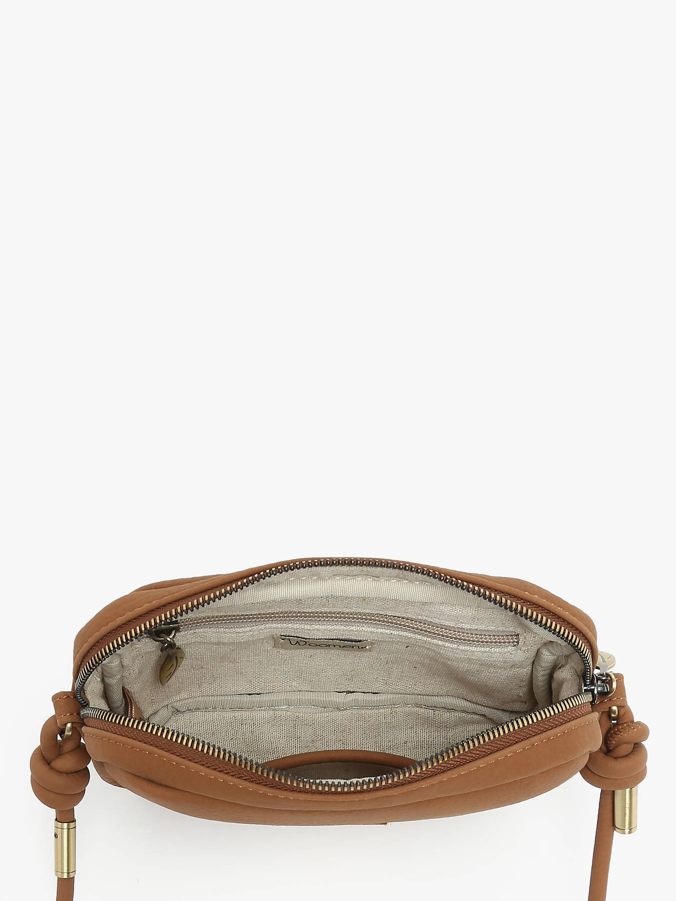 This crossbody bag from WOOMEN's MUSCARI line is made from recycled polyurethane with a grained effect and a peach-skin feel. Inspired by camera bags, it features a drawstring detail allowing you to adjust the strap to your preferences. It includes a back pocket, a zippered closure, and inside, a slip pocket, a zippered pocket, and a single compartment.