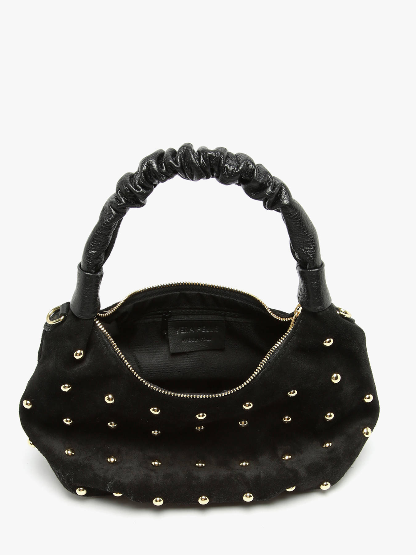 The VELVET STUDS MILANO shoulder bag, crafted from cowhide leather, combines elegance and functionality. Its smooth leather exterior features a zip closure that ensures the security of your belongings. The 16 cm handle height allows for comfortable hand carrying, while the adjustable and removable shoulder strap offers the option to wear it crossbody, according to your preferences and needs. The interior consists of a single compartment, ideal for keeping your essentials organized without bulk. This versatile and chic bag is perfect to complement all your outfits, from everyday wear to dressier occasions, adding a refined and modern touch to your style.